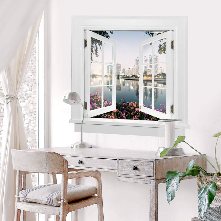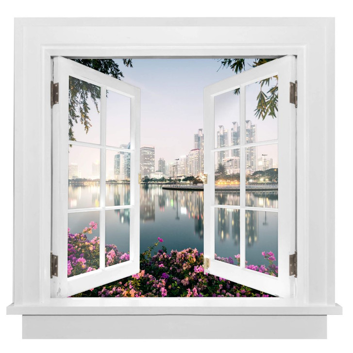 3D Wandtattoo Fenster quadratisch - Colombo - Bangkok und seine Lichter