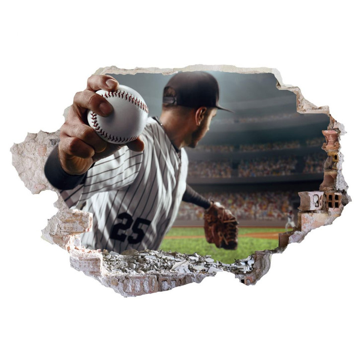 Entdecken Sie beliebte Trends und gestalten Sie Ihren Raum zum Wohlfühlen und Erholen. Kennen Sie schon unsere 3D-Wandtattoos? Lassen Sie sich von dieser Deko als originelle Abwechslung begeistern. Das Wandtattoo entführt Sie in ein riesiges Baseballstation. Mit dem Wanddurchbruch geniessen Sie den Blick auf einen Pitcher bei seinem Wurf.
