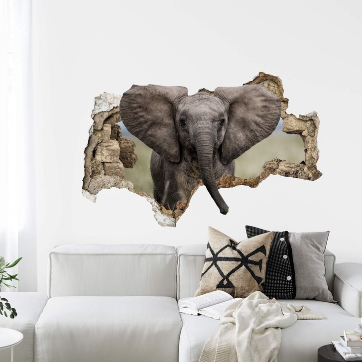 Entdecken Sie beliebte Trends und gestalten Sie Ihren Raum zum Wohlfühlen und Erholen. Kennen Sie schon unsere 3D-Wandtattoos? Lassen Sie sich von dieser Deko als originelle Abwechslung begeistern. Der Künstler van Duijn entführt Sie mit seiner Fotografie mitten nach Afrika. Durch den Wanddurchbruch hat ein neugieriger Elefant schon einmal seinen Kopf gesteckt.