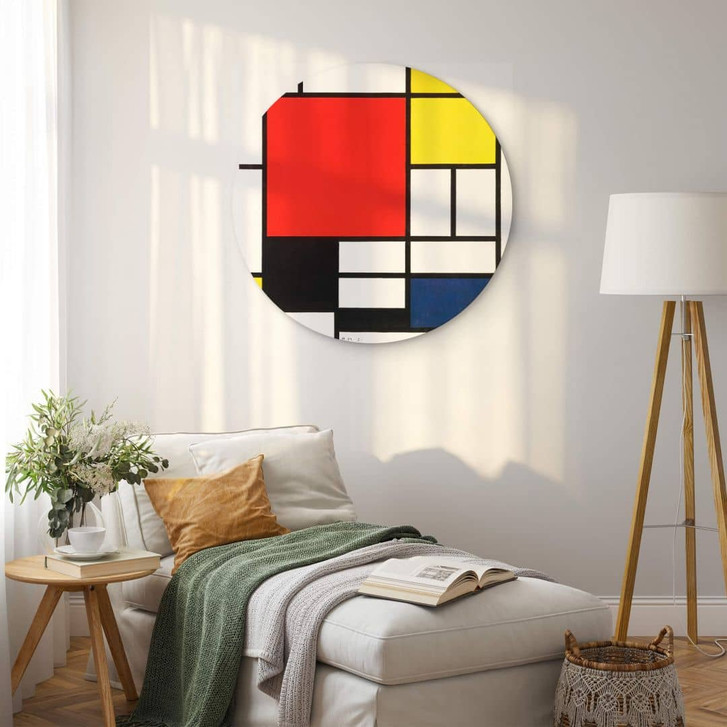 Alu-Dibond Mondrian - Komposition mit Rot Gelb Blau und Schwarz - Rund