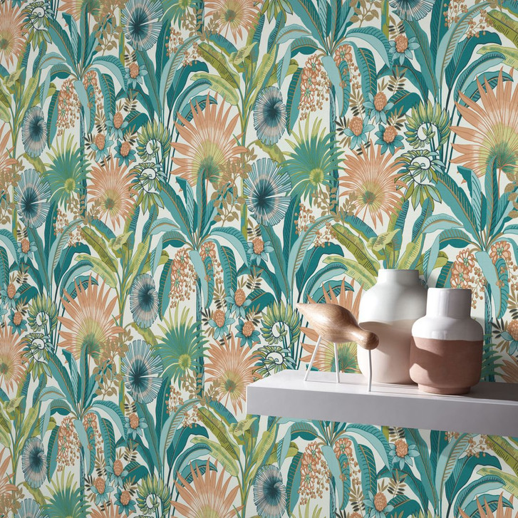 Blumentapete, Florale Tapete, Vliestapete Erismann Martinique türkis
