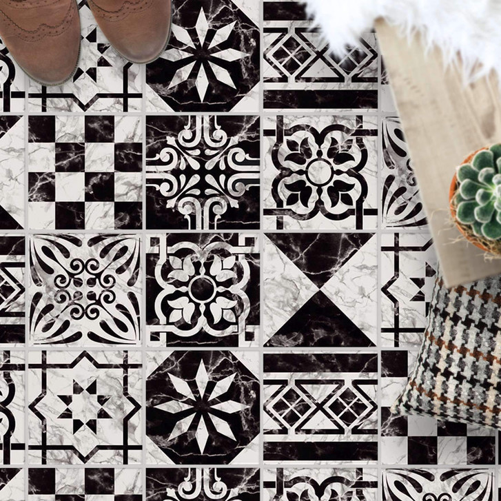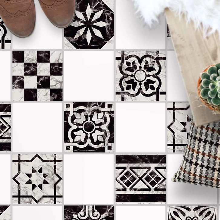 Unsere Fliesenaufkleber Boden Marmor Muster sind passgenau zugeschnitten und der Blickfang in Küche & Bad. Die Klebefliesen sind hochwertige, selbsthaftende Vinylfolien (seidenmatt) und können dank Bubble-free Technologie kinderleicht verklebt werden.