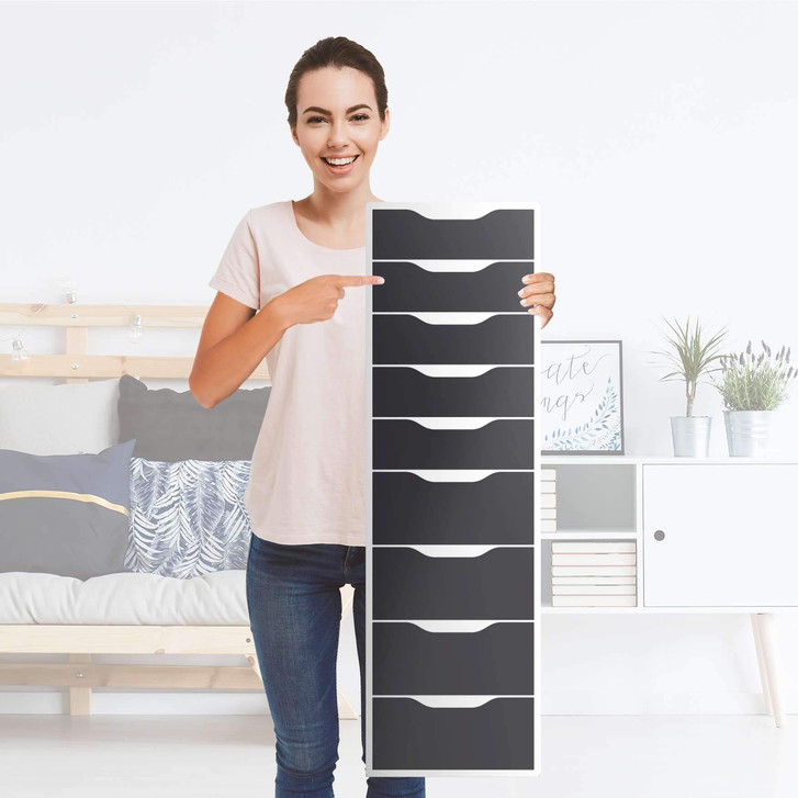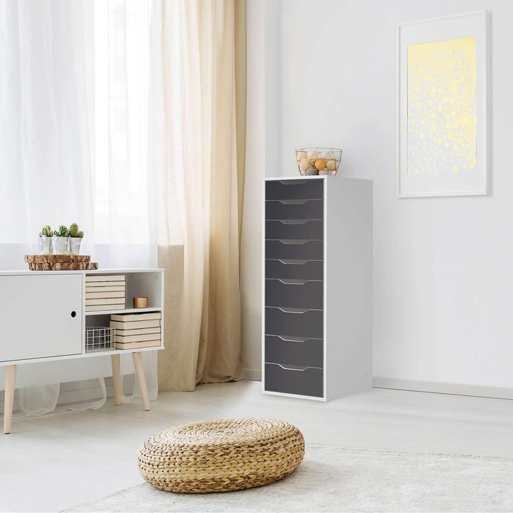 Unsere Folie Grau Dark für das Alex 9 Schubladen ist der Blickfang im Wohnzimmer. Unsere Dekofolien sind hochwertige, selbsthaftende Vinylfolien (seidenmatt) und können dank Bubble-free Technologie kinderleicht verklebt werden.