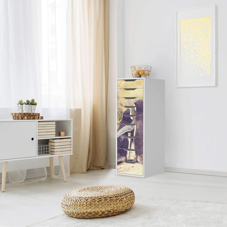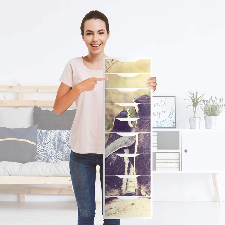 Unsere Folie Pingu Friendship für das Alex 9 Schubladen ist der Blickfang im Wohnzimmer. Unsere Dekofolien sind hochwertige, selbsthaftende Vinylfolien (seidenmatt) und können dank Bubble-free Technologie kinderleicht verklebt werden.
