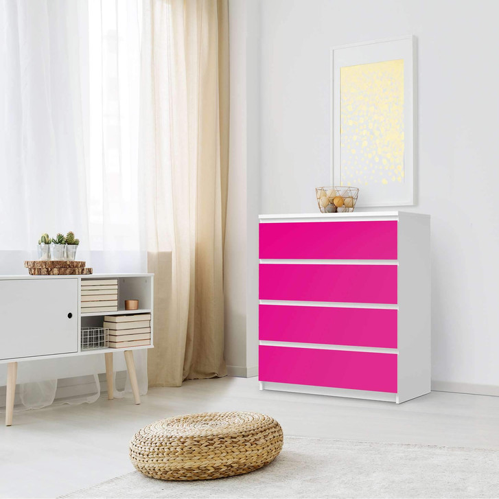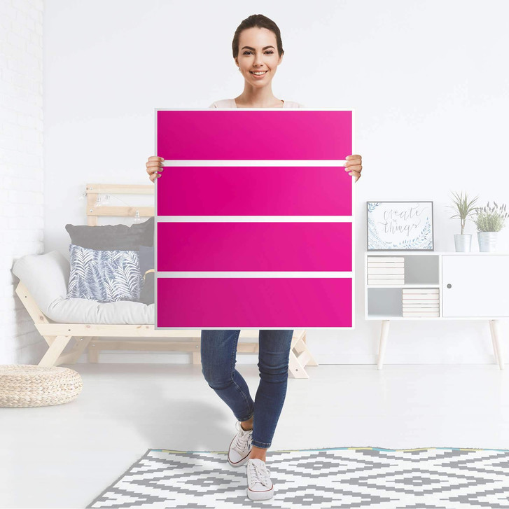 Unsere Folie Pink Dark für die Malm Kommode 4 Schubladen ist der Blickfang in jedem Schlafzimmer. Die Dekofolien sind hochwertige, selbsthaftende Vinylfolien (seidenmatt) und können dank Bubble-free Technologie kinderleicht verklebt werden.