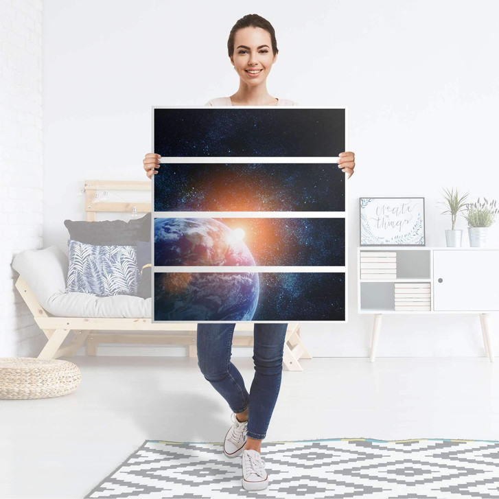 Unsere Folie Sunrise für die Malm Kommode 4 Schubladen ist der Blickfang in jedem Schlafzimmer. Die Dekofolien sind hochwertige, selbsthaftende Vinylfolien (seidenmatt) und können dank Bubble-free Technologie kinderleicht verklebt werden.