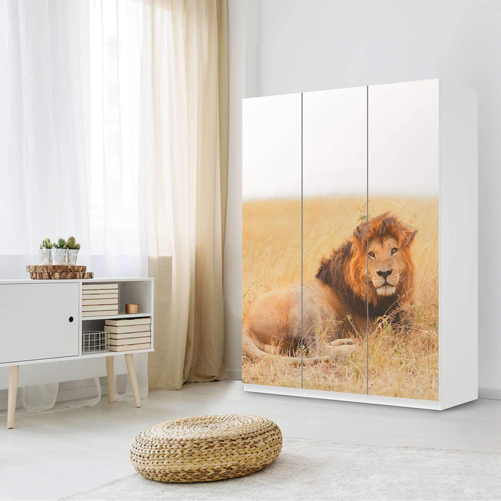 Unsere Folie Lion King ist passend zugeschnitten für den Pax Schrank 201cm Höhe - 3 Türen und ist der Blickfang in jedem Schlafzimmer. Die Dekofolien sind hochwertige, selbsthaftende Vinylfolien (seidenmatt) und können dank Bubble-free Technologie kinderleicht verklebt werden.