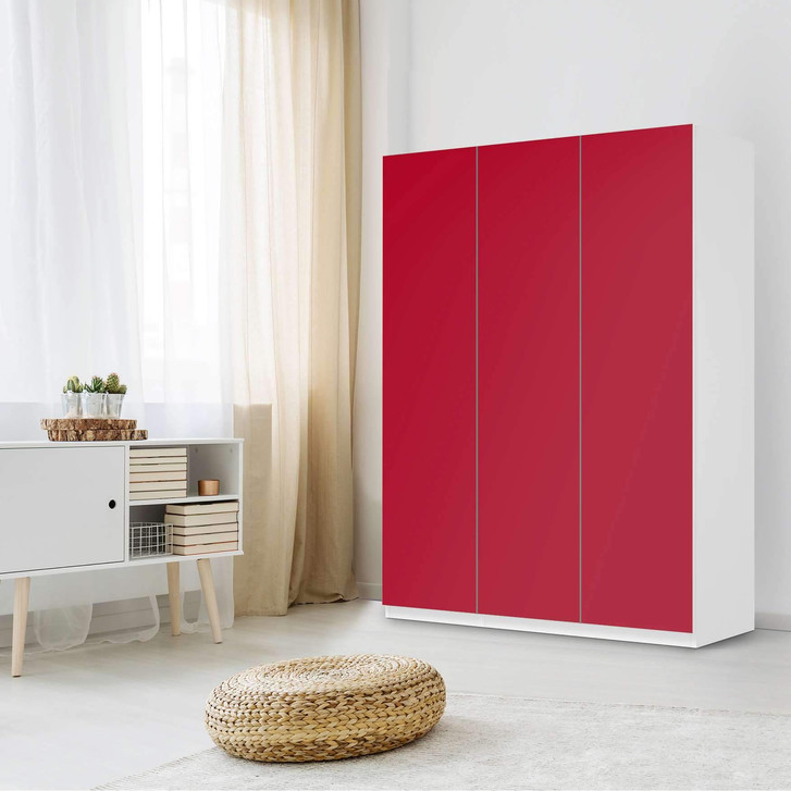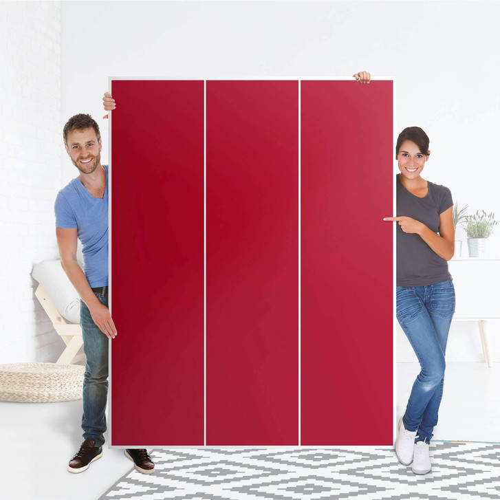Unsere Folie Rot Dark ist passend zugeschnitten für den Pax Schrank 201cm Höhe - 3 Türen und ist der Blickfang in jedem Schlafzimmer. Die Dekofolien sind hochwertige, selbsthaftende Vinylfolien (seidenmatt) und können dank Bubble-free Technologie kinderleicht verklebt werden.