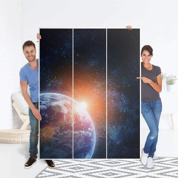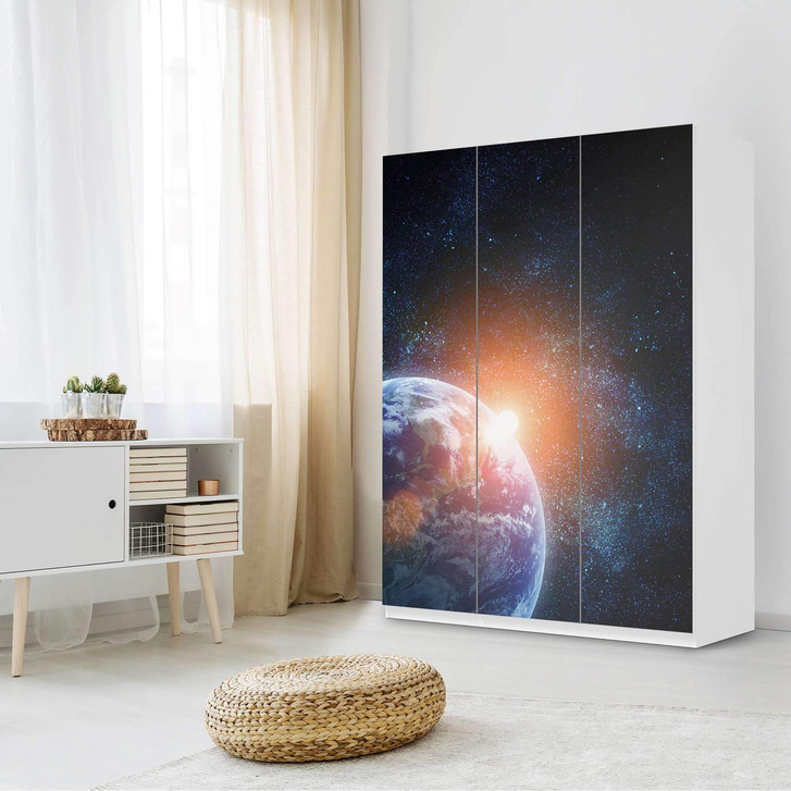 Unsere Folie Sunrise ist passend zugeschnitten für den Pax Schrank 201cm Höhe - 3 Türen und ist der Blickfang in jedem Schlafzimmer. Die Dekofolien sind hochwertige, selbsthaftende Vinylfolien (seidenmatt) und können dank Bubble-free Technologie kinderleicht verklebt werden.