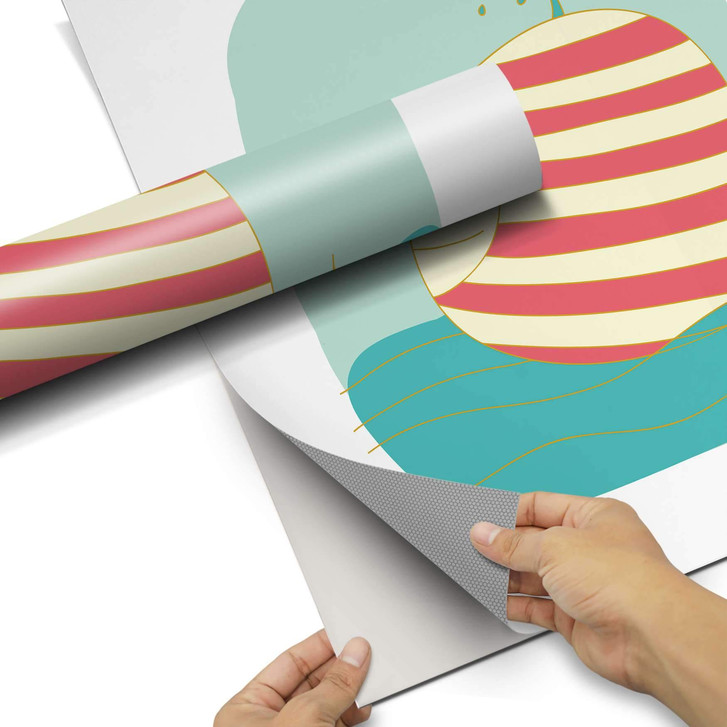 Das Trägerpapier von der Folie ca. 10-20 cm abziehen und am oberen Bereich des Objektes positionieren. Zieh jetzt das Trägerpapier Stück für Stück von der Motivfolie nach unten hin ab und streiche das Motiv vorsichtig an der Möbeloberfläche fest.