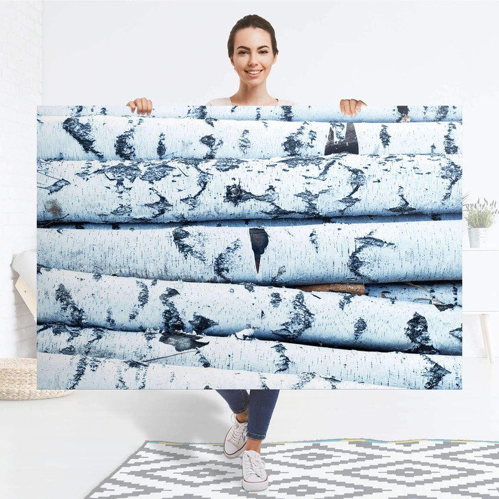 Das Trägerpapier von der Folie ca. 10-20 cm abziehen und am oberen Bereich des Objektes positionieren. Zieh jetzt das Trägerpapier Stück für Stück von der Motivfolie nach unten hin ab und streiche das Motiv vorsichtig an der Möbeloberfläche fest.