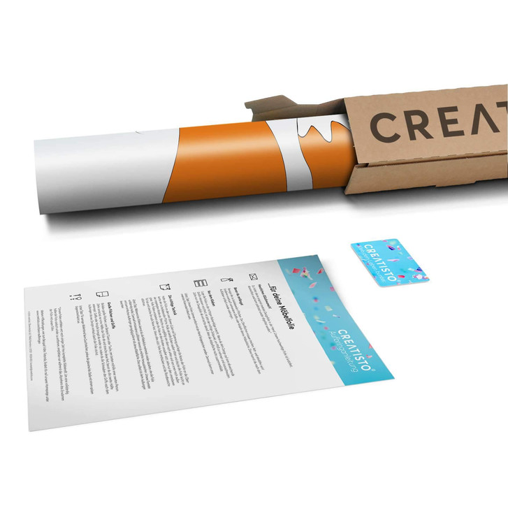 Das Trägerpapier von der Folie ca. 10-20 cm abziehen und am oberen Bereich des Objektes positionieren. Zieh jetzt das Trägerpapier Stück für Stück von der Motivfolie nach unten hin ab und streiche das Motiv vorsichtig an der Möbeloberfläche fest.