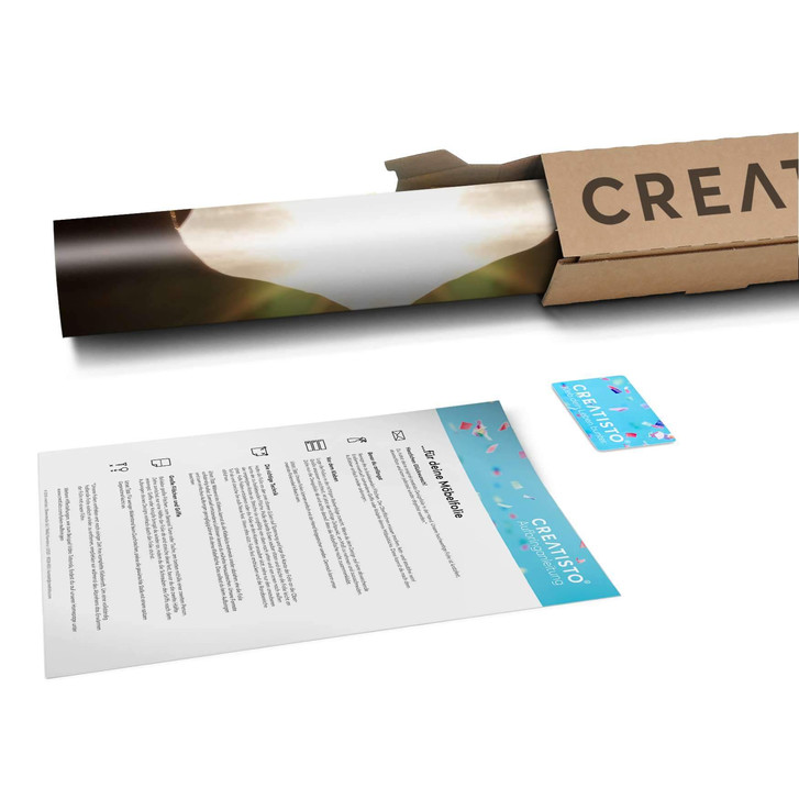 Das Trägerpapier von der Folie ca. 10-20 cm abziehen und am oberen Bereich des Objektes positionieren. Zieh jetzt das Trägerpapier Stück für Stück von der Motivfolie nach unten hin ab und streiche das Motiv vorsichtig an der Möbeloberfläche fest.