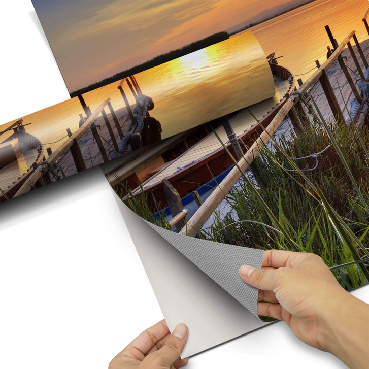 Das Trägerpapier von der Folie ca. 10-20 cm abziehen und am oberen Bereich des Objektes positionieren. Zieh jetzt das Trägerpapier Stück für Stück von der Motivfolie nach unten hin ab und streiche das Motiv vorsichtig an der Möbeloberfläche fest.