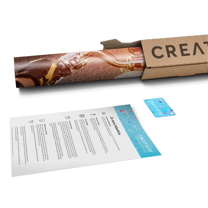 Das Trägerpapier von der Folie ca. 10-20 cm abziehen und am oberen Bereich des Objektes positionieren. Zieh jetzt das Trägerpapier Stück für Stück von der Motivfolie nach unten hin ab und streiche das Motiv vorsichtig an der Möbeloberfläche fest.
