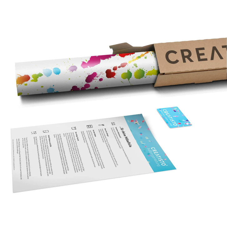 Unser Folienbogen Splash 2 (Grösse: 90x90cm) ist die Klebefolie für alle Selbermacher & Bastler. Die Dekofolien sind hochwertige, selbstklebende Vinylfolien (seidenmatt) und können dank Bubble-free Technologie auf allen glatten Oberflächen kinderleicht verklebt werden. Ein Zuschnitt ist problemlos möglich.