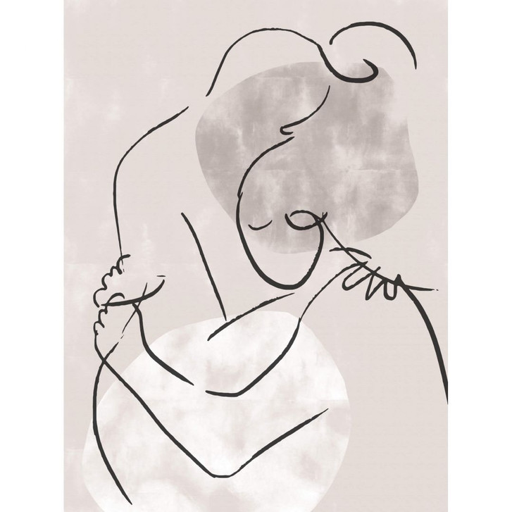 Linien, Formen, Flächen: Die geometrische Abstraktion ist eine Kunstform, die sich aus gegenstandslosen Kompositionen zusammensetzt. Einfach und gut ist diese Illustration im minimalistischen Stil. Hier kann man zwei Menschen beobachten, die sich liebevoll umarmen. Das Paar ist sehr vertraut miteinander und durch die weichen Farben in Beige wird die Zartheit und Wärme des Bildes hervor gehoben. Die Illustration lässt sich mit verschiedenen Motiven kombinieren und passt wunderbar zum modernen Wohnstil.