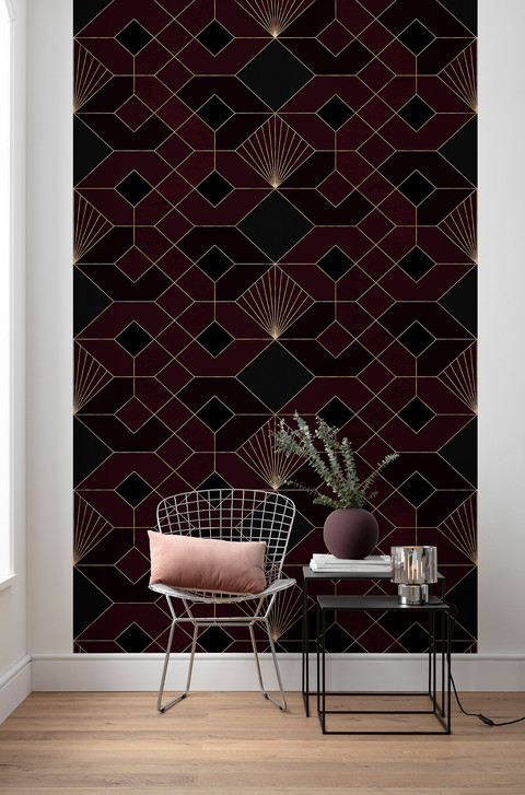 Labyrinth oder Symmetrie? Das verschlungene Muster der Tapete wirkt sowohl gleichförmig als auch undurchdringlich.