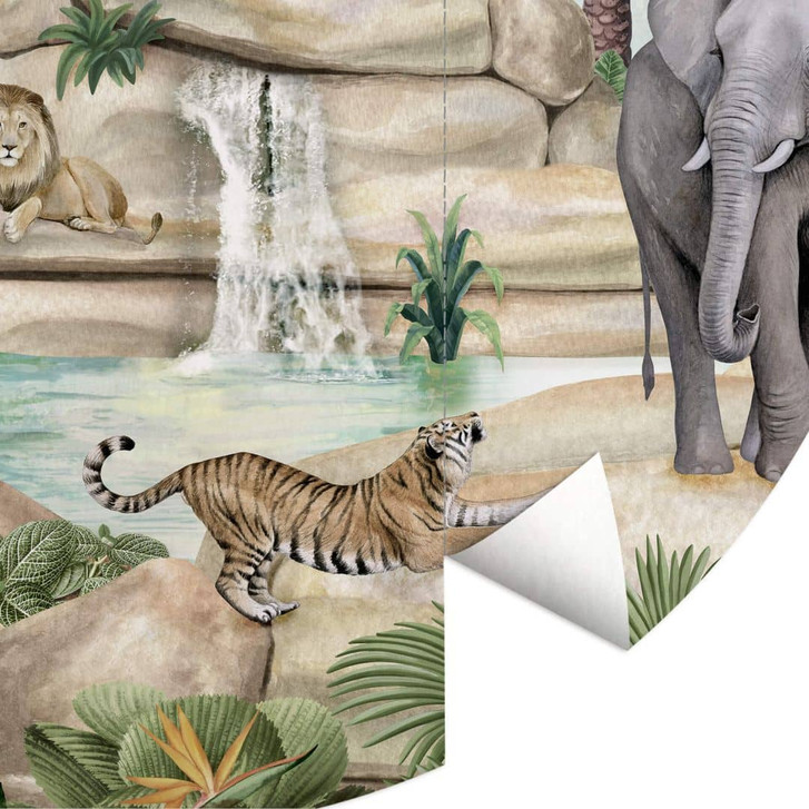 Tierisch gut - hier im tropischen Dschungel lassen es sich der Löwe, Elefant und die Giraffe richtig gut gehen. Denn dieser paradiesische Ort mit exotischen Pflanzen bietet ganz viel Platz zum Verweilen und Entspannen. Die Bewohner auf Safari kommen als hochwertige Vliestapete in Ihr Zuhause, mit der sich der Nachwuchs rundum wohlfühlen wird. Die Tier Illustration ist auch als klassische Fototapete im Grossformat erhältlich.