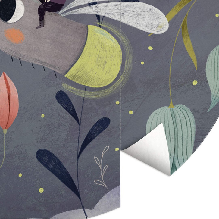 Toben, Lernen, Wachsen – ein Baby- und Kinderzimmer muss vieles mitmachen und mit dieser Deko helfen Sie dabei, es noch ein Stückchen besser zu machen. Die Illustration im märchenhaften Stil schafft eine friedliche Stimmung. Dieser Kunstdruck für Kinder überzeugt mit seinem freundlichen Design in farbenprächtiger Darstellung. Mit diesem Motiv lässt sich das Kinderzimmer liebevoll gestalten, in dem die Kleinen ihrer Fantasie freien Lauf lassen können. Die runde Fototapete kreiert in Ihren Räumlichkeiten mit ihrer schwarzen und bunten Farbgebung ein einmaliges Wohnambiente, in dem es sich wunderbar entspannen lässt.