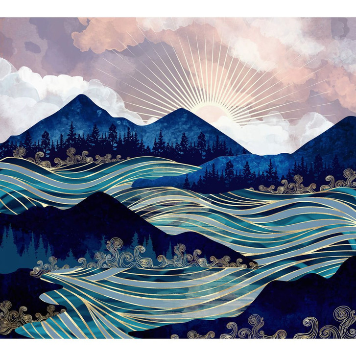 Bereichern Sie das eigene Zuhause mit raffinierten Bildern und schaffen Sie sich einen individuellen Ort zum Verweilen! Der Kunstdruck von SpaceFrog Designs zeigt eine beeindruckende Berglandschaft mit Bäumen. Der aufgewühlte Fluss mit den Wellen steht im Mittelpunkt und schlängelt sich durch das Gebirge.