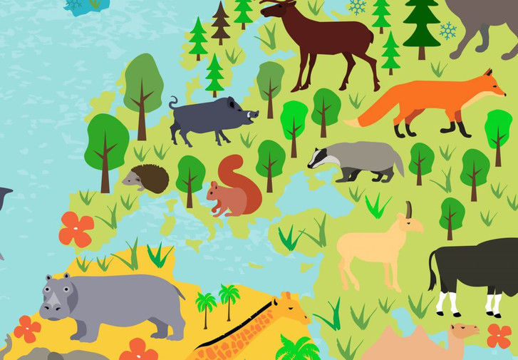 Gehen Sie mit Ihren Kindern auf Entdeckungstour im Kinderzimmer! Auf der liebevoll gestalteten "Tierischen Landkarte" sind alle Kontinente mit ihren länderspezifischen Tieren zu sehen.