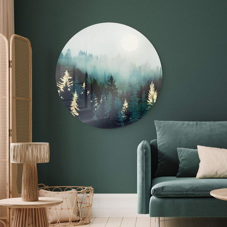 Glasbild SpaceFrog Designs - Nebliger Wald - Rund