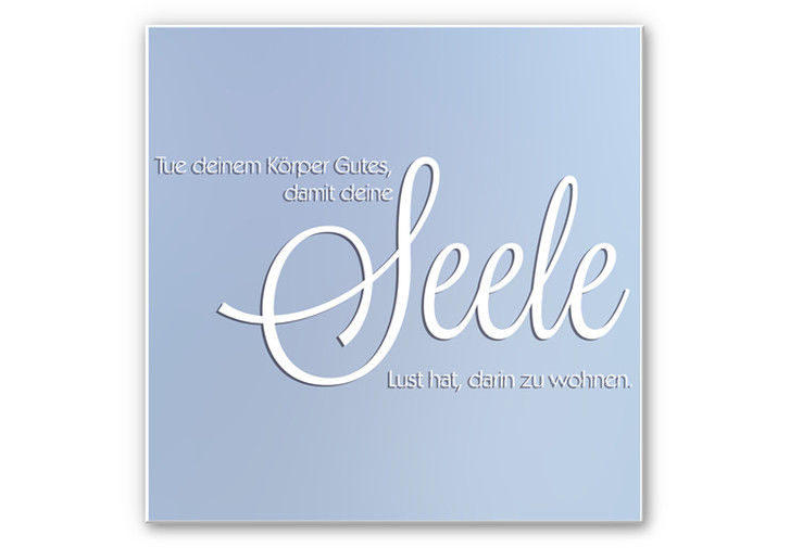 Das 4-teilige Hartschaum-Wandbild mit dem Spruch "Tue deinem Körper Gutes, damit deine Seele Lust hat, darin zu wohnen" ist in verschiedenen Grössen erhältlich.