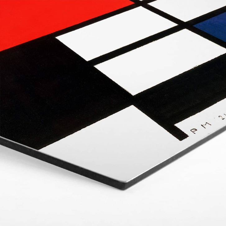 Hexagon - Alu-Dibond Mondrian - Komposition mit Rot Gelb Blau und Schwarz
