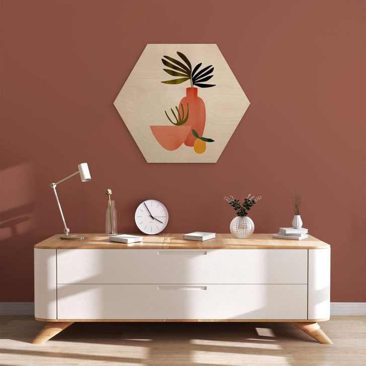 Mediterranes Flair für Zuhause: Das Stillleben mit Pflanzen in einer Vase als Kunstdruck zaubert eine entzückende Optik an die Wand. Denn das minimalistische Motiv begeistert mit abstrakten Komponenten und harmonischen Farben. Holen Sie sich das zeitgenössische Bild nach Hause und sorgen mit ihm auch gleich für eine entspannte Wohnatmosphäre. Die Illustration eignet sich perfekt für die Küche und das Wohnzimmer, aber auch in Restaurant- und Hotelräumen verbreitet sie südländisches Flair, das für mehr Wohlfühlgefühl sorgt.