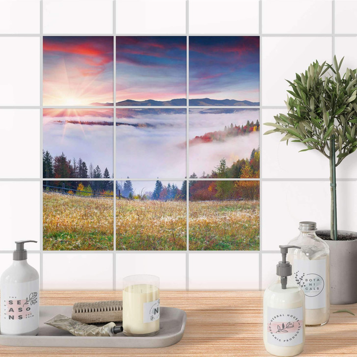 Unsere Klebefliesen Herbstwald sind passgenau zugeschnitten und der Blickfang in Küche & Bad. Die Klebefliesen sind hochwertige, selbsthaftende Vinylfolien (seidenmatt) und können dank Bubble-free Technologie kinderleicht verklebt werden.