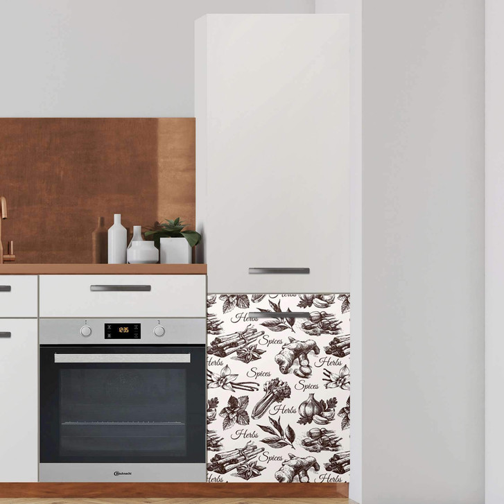 Unsere Klebefolie Spices für den Hochschrank (Grösse: 60x80cm) ist der Blickfang in jeder Küche. Die Küchenfolien sind hochwertige, selbsthaftende Vinylfolien (seidenmatt) und müssen auf das gewünschte Mass zugeschnitten werden.