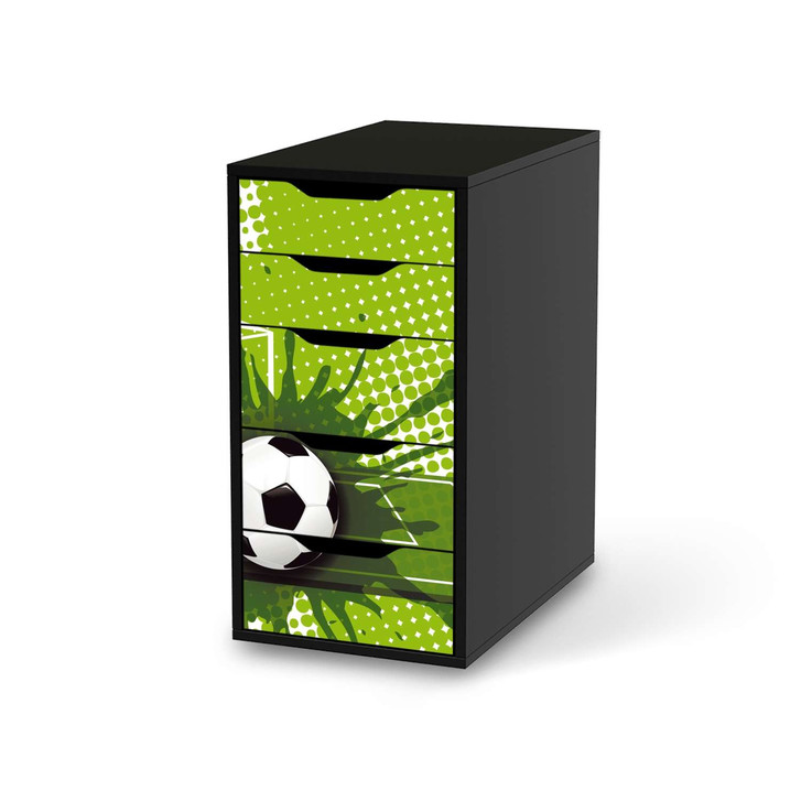Unsere Klebefolie Goal für das Alex 5 Schubladen ist der Blickfang im Kinderzimmer. Unsere Dekofolien sind hochwertige, selbsthaftende Vinylfolien (seidenmatt) und können dank Bubble-free Technologie kinderleicht verklebt werden.