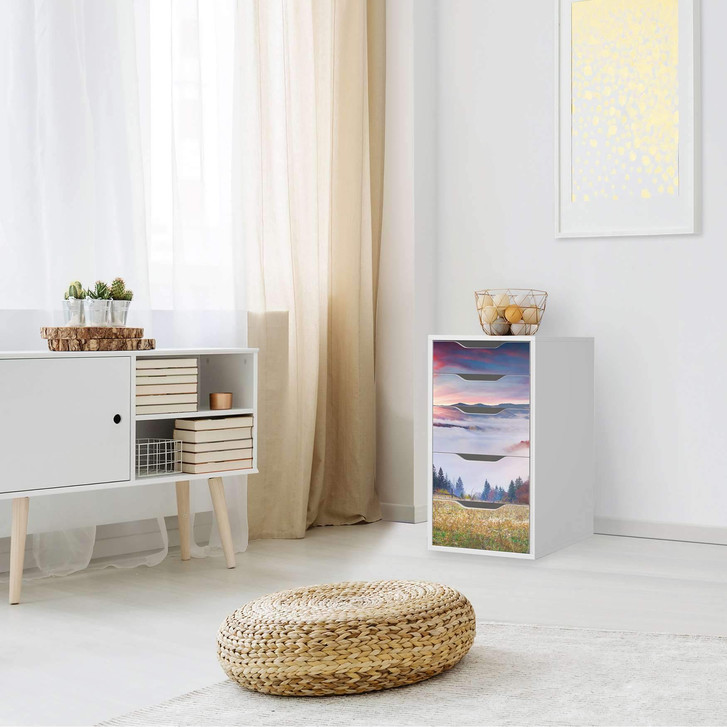 Unsere Klebefolie Herbstwald für das Alex 5 Schubladen ist der Blickfang im Wohnzimmer. Unsere Dekofolien sind hochwertige, selbsthaftende Vinylfolien (seidenmatt) und können dank Bubble-free Technologie kinderleicht verklebt werden.