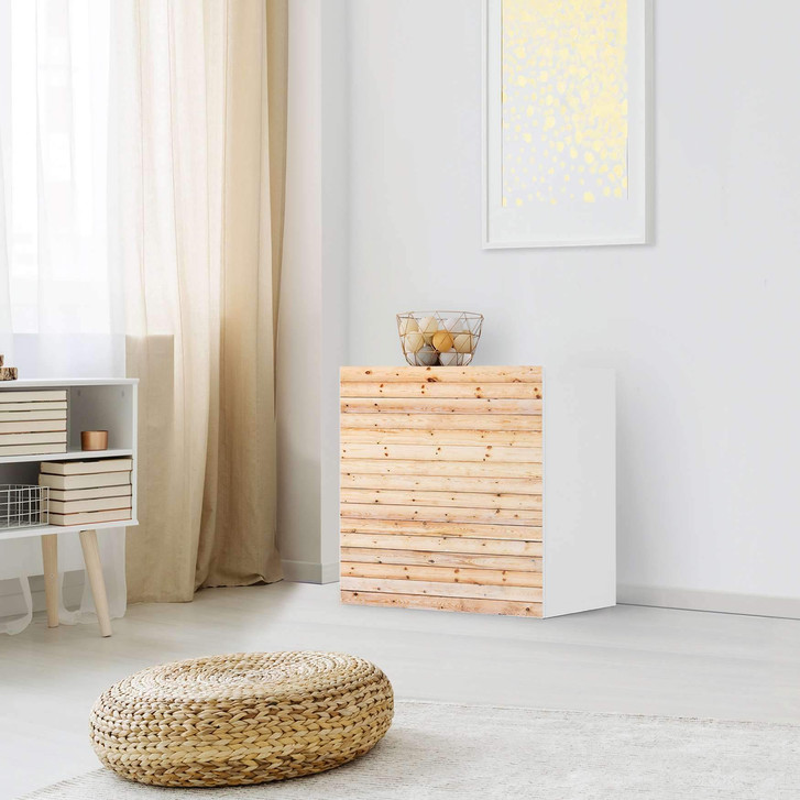 Unsere Klebefolie Bright Planks für das Besta Regal 1 Türe ist der Blickfang in jedem Wohnzimmer. Die Dekofolien sind hochwertige, selbsthaftende Vinylfolien (seidenmatt) und können dank Bubble-free Technologie kinderleicht verklebt werden.