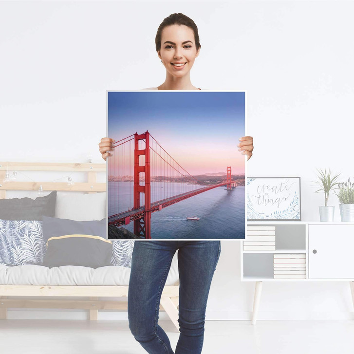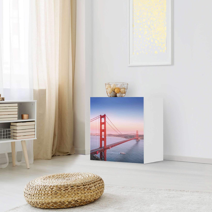 Unsere Klebefolie Golden Gate für das Besta Regal 1 Türe ist der Blickfang in jedem Wohnzimmer. Die Dekofolien sind hochwertige, selbsthaftende Vinylfolien (seidenmatt) und können dank Bubble-free Technologie kinderleicht verklebt werden.