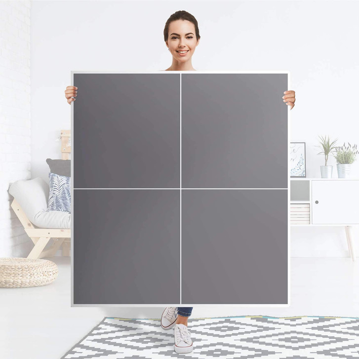 Unsere Klebefolie Grau Light für den Besta Schrank 4 Türen ist der Blickfang in jedem Wohnzimmer. Die Dekofolien sind hochwertige, selbsthaftende Vinylfolien (seidenmatt) und können dank Bubble-free Technologie kinderleicht verklebt werden.