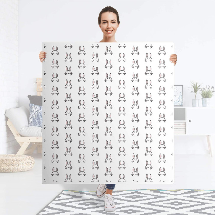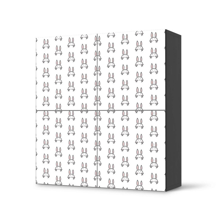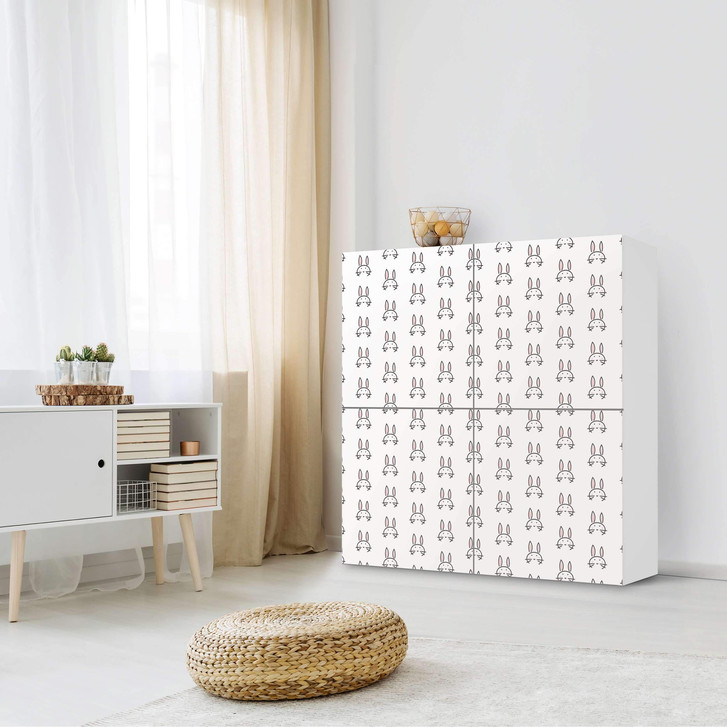 Unsere Klebefolie Hoppel für den Besta Schrank 4 Türen ist der Blickfang in jedem Kinderzimmer. Die Dekofolien sind hochwertige, selbsthaftende Vinylfolien (seidenmatt) und können dank Bubble-free Technologie kinderleicht verklebt werden.