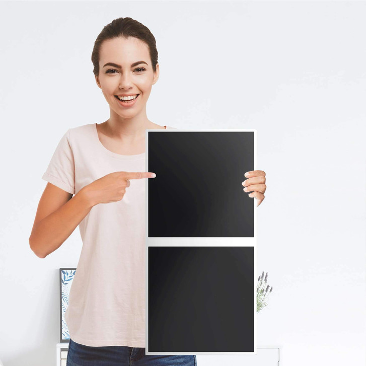 Unsere Klebefolie Schwarz für das Expedit Regal 2 Türen (hoch) ist der Blickfang in jedem Wohnzimmer. Die Dekofolien sind hochwertige, selbsthaftende Vinylfolien (seidenmatt) und können dank Bubble-free Technologie kinderleicht verklebt werden.