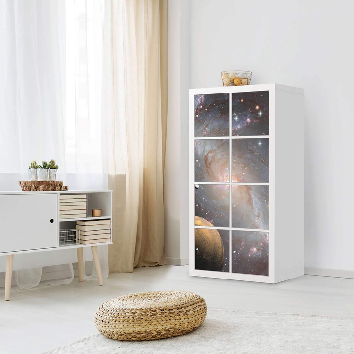 Unsere Klebefolie Milky Way für das Expedit Regal 8 Türen ist der Blickfang in jedem Wohnzimmer. Die Dekofolien sind hochwertige, selbsthaftende Vinylfolien (seidenmatt) und können dank Bubble-free Technologie kinderleicht verklebt werden.