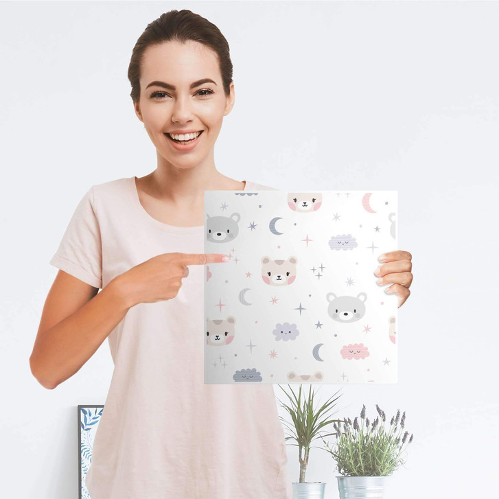 Unsere Klebefolie Sweet Dreams für das Expedit Regal Tür einzeln ist der Blickfang in jedem Kinderzimmer. Die Dekofolien sind hochwertige, selbsthaftende Vinylfolien (seidenmatt) und können dank Bubble-free Technologie kinderleicht verklebt werden.