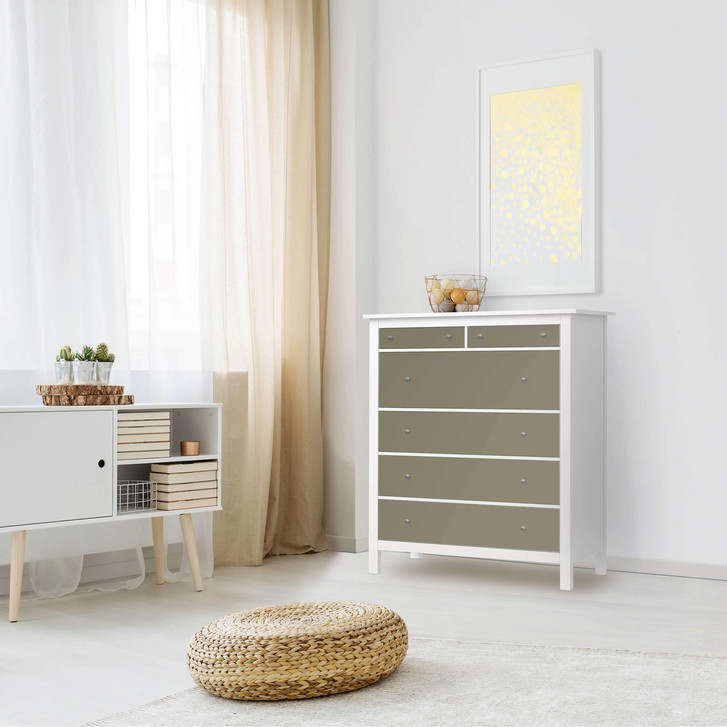 Unsere Klebefolie Braungrau Light für die Hemnes Kommode 6 Schubladen ist der Blickfang in jedem Wohnzimmer. Die Dekofolien sind hochwertige, selbsthaftende Vinylfolien (seidenmatt) und können dank Bubble-free Technologie kinderleicht verklebt werden.