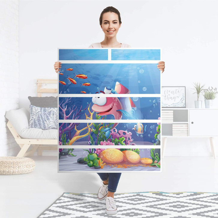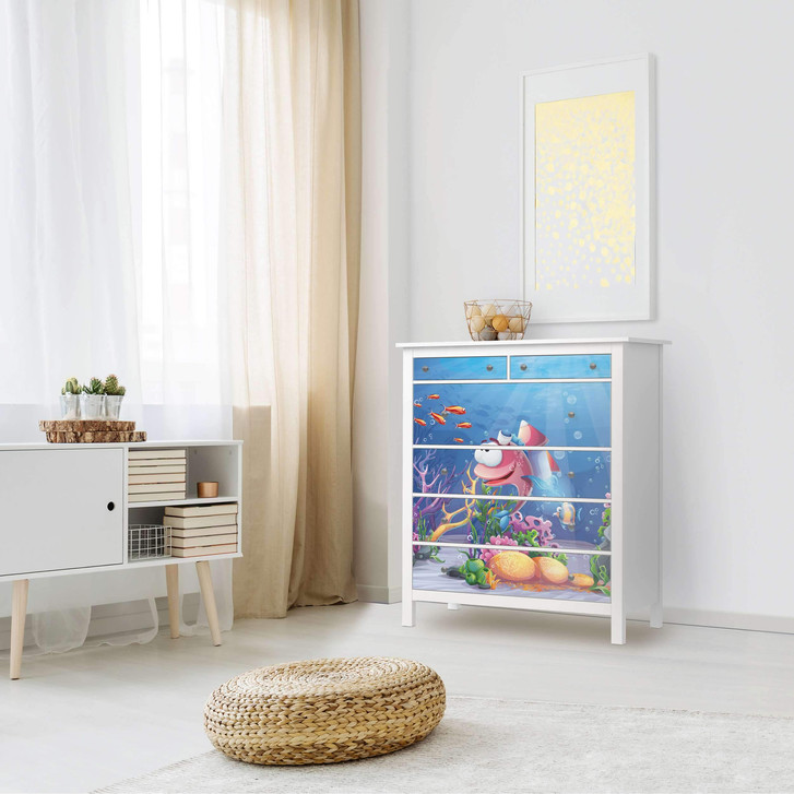 Unsere Klebefolie Bubbles für die Hemnes Kommode 6 Schubladen ist der Blickfang in jedem Kinderzimmer. Die Dekofolien sind hochwertige, selbsthaftende Vinylfolien (seidenmatt) und können dank Bubble-free Technologie kinderleicht verklebt werden.