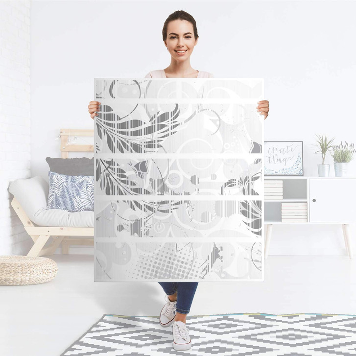 Unsere Klebefolie Florals Plain 2 für die Hemnes Kommode 6 Schubladen ist der Blickfang in jedem Wohnzimmer. Die Dekofolien sind hochwertige, selbsthaftende Vinylfolien (seidenmatt) und können dank Bubble-free Technologie kinderleicht verklebt werden.