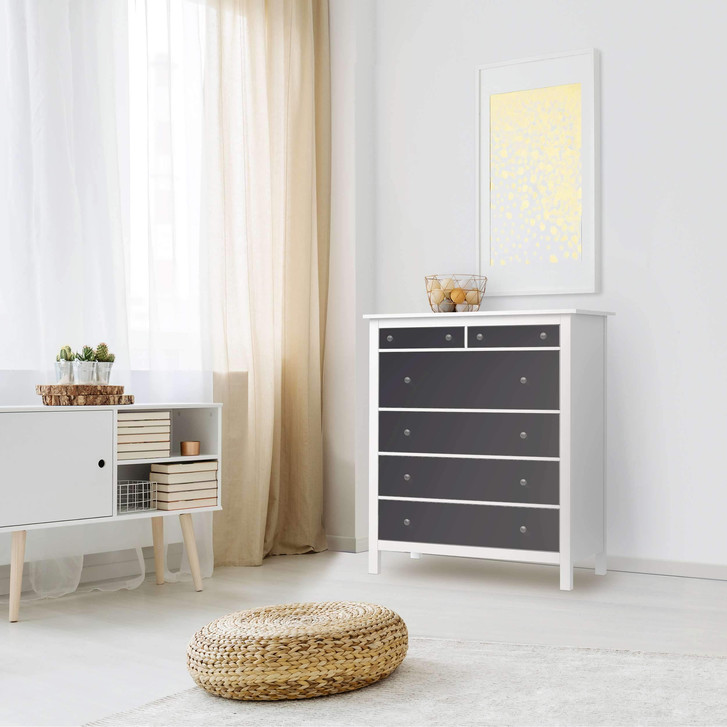 Unsere Klebefolie Grau Dark für die Hemnes Kommode 6 Schubladen ist der Blickfang in jedem Wohnzimmer. Die Dekofolien sind hochwertige, selbsthaftende Vinylfolien (seidenmatt) und können dank Bubble-free Technologie kinderleicht verklebt werden.