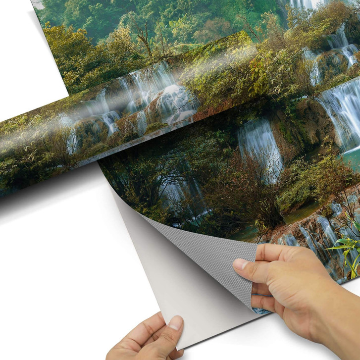 Das Trägerpapier von der Folie ca. 10-20 cm abziehen und am oberen Bereich des Objektes positionieren. Zieh jetzt das Trägerpapier Stück für Stück von der Motivfolie nach unten hin ab und streiche das Motiv vorsichtig an der Möbeloberfläche fest.