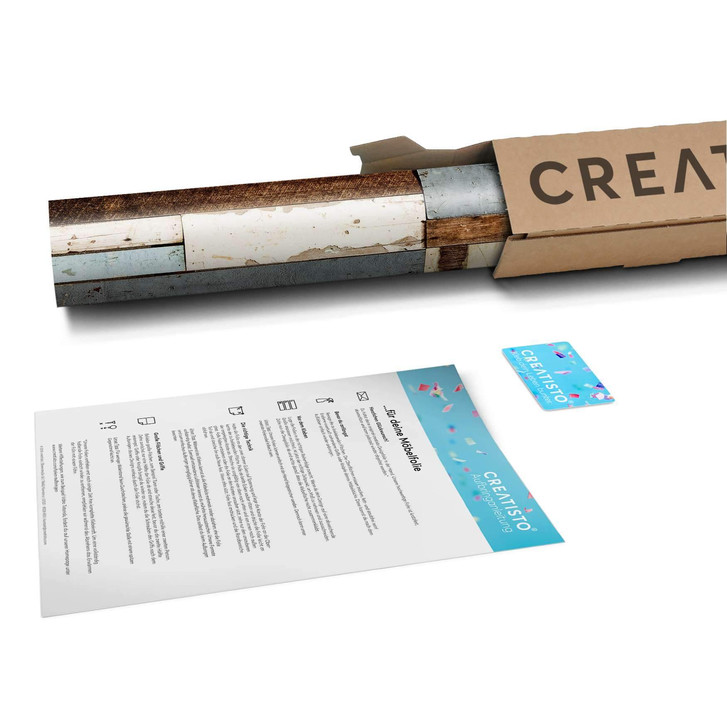 Das Trägerpapier von der Folie ca. 10-20 cm abziehen und am oberen Bereich des Objektes positionieren. Zieh jetzt das Trägerpapier Stück für Stück von der Motivfolie nach unten hin ab und streiche das Motiv vorsichtig an der Möbeloberfläche fest.