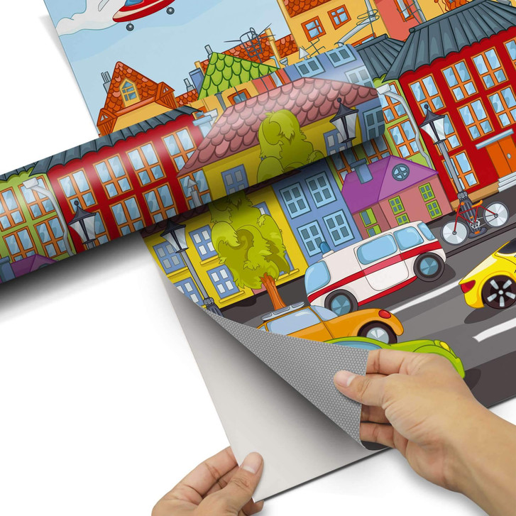 Unsere Klebefolie City Life für das Kallax Regal 4 Türen ist der Blickfang in jedem Kinderzimmer. Die Dekofolien sind hochwertige, selbsthaftende Vinylfolien (seidenmatt) und können dank Bubble-free Technologie kinderleicht verklebt werden.