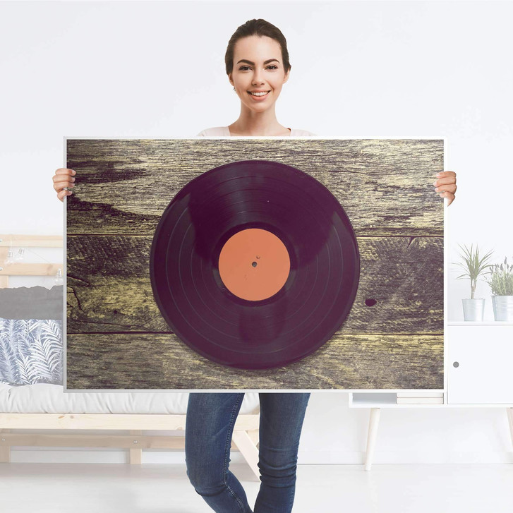 Das Trägerpapier von der Folie ca. 10-20 cm abziehen und am oberen Bereich des Objektes positionieren. Zieh jetzt das Trägerpapier Stück für Stück von der Motivfolie nach unten hin ab und streiche das Motiv vorsichtig an der Möbeloberfläche fest.