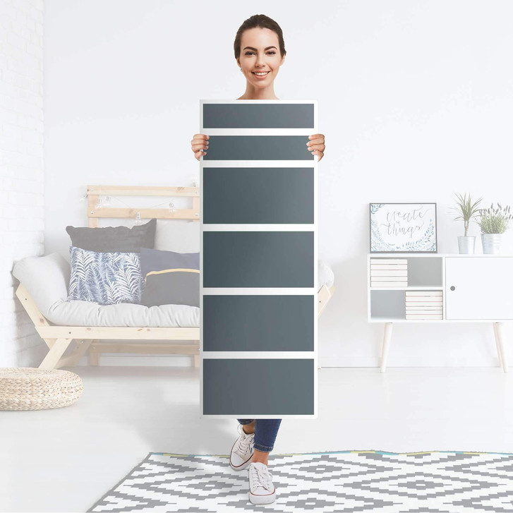 Unsere Klebefolie Blaugrau Light für die Malm Kommode 6 Schubladen (schmal) ist der Blickfang in jedem Schlafzimmer. Die Dekofolien sind hochwertige, selbsthaftende Vinylfolien (seidenmatt) und können dank Bubble-free Technologie kinderleicht verklebt werden.